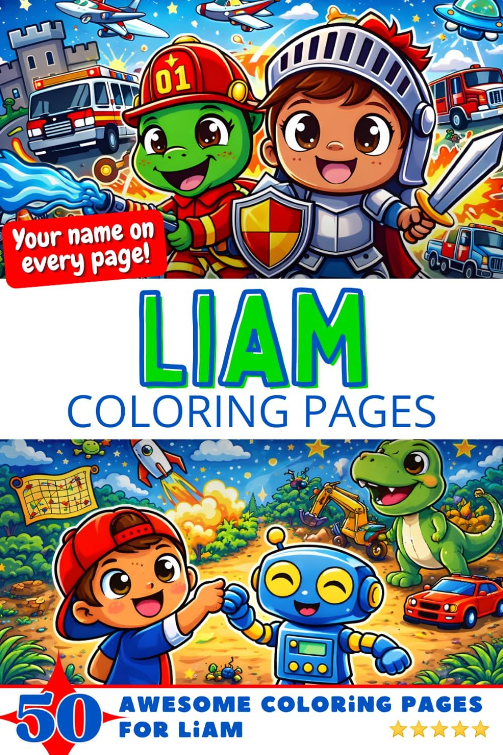 Unleash creativity with the Liam Coloring Book, specially made to delight and inspire every boy.